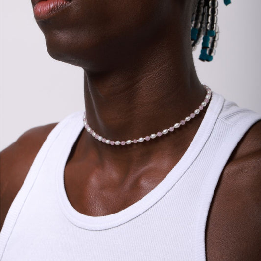 Natural Pearls and Rose Quartz Necklace 925 Silver