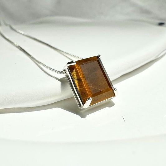Cornell Silver Necklace 925 with Natural Tiger Eye Rectangular Stone | Voices Collection