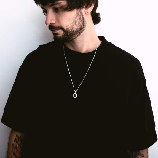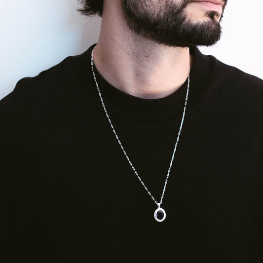 Silver Necklace with Natural Black Tourmaline Oval Medallion
