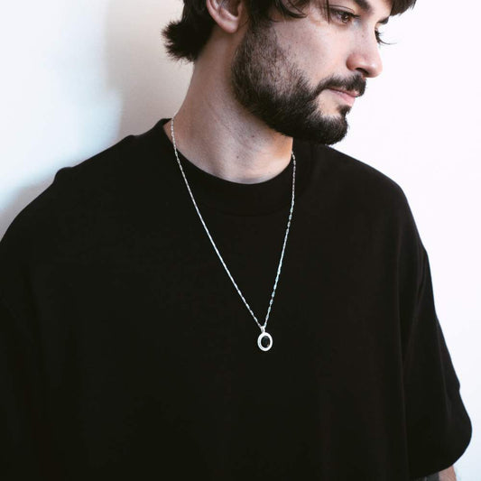 Silver Necklace with Natural Emerald Oval Stone | Aura Collection