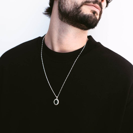 Silver Necklace with Natural Labradorite Oval Stone | Aura Collection