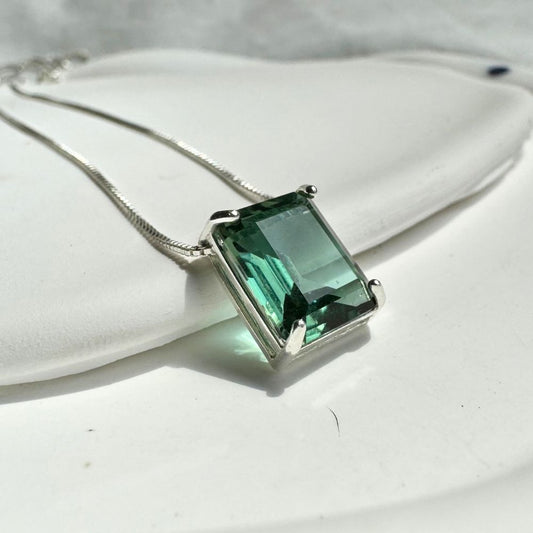 Hendrix Silver Necklace 925 with Natural Green Tourmaline Rectangular Stone | Voices Collection