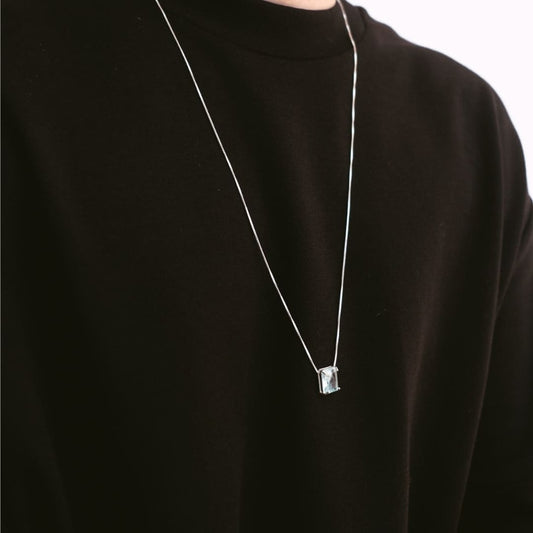 Shakur Silver Necklace with Natural Rutile Quartz Rectangular Stone | Voices Collection