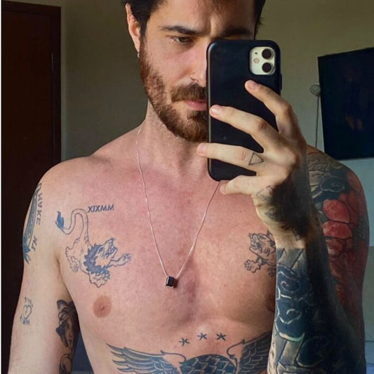 Winehouse Silver Necklace 925 with Natural Onyx Rectangular Stone | Voices Collection