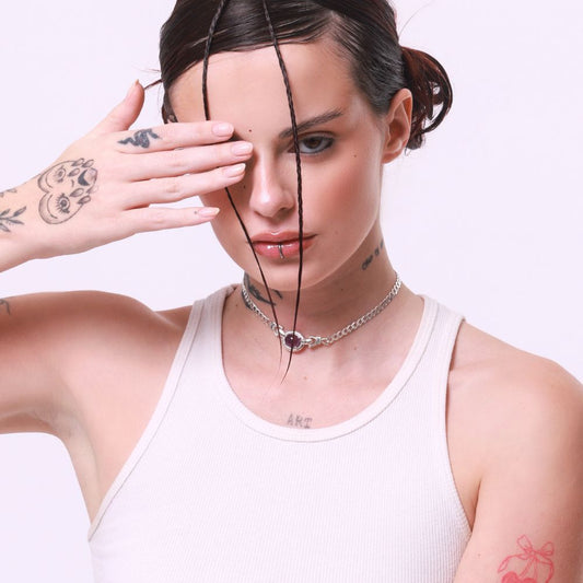Sterling Silver Choker Necklace with Amethyst