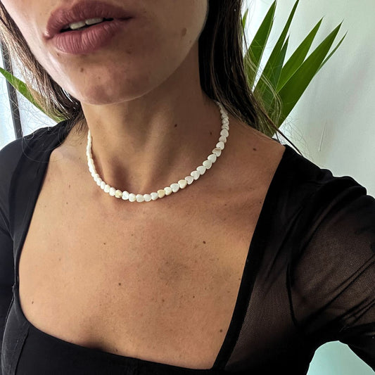 Sterling Silver Heart Choker with Mother-of-Pearl