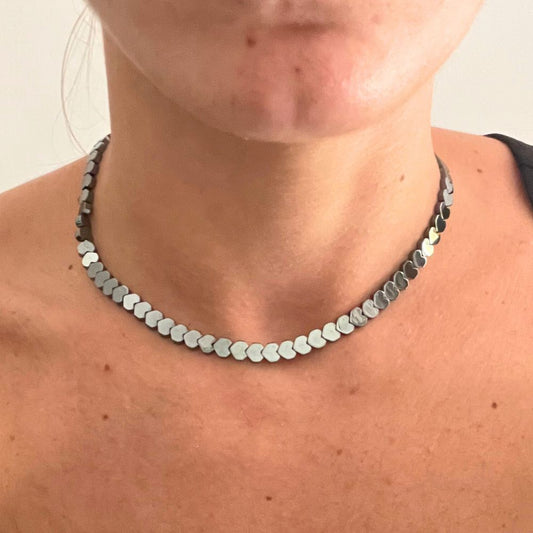 Sterling Silver Heart Choker with Hematite