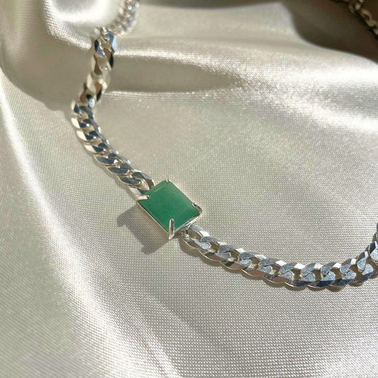Sterling Silver Choker Necklace with Rectangular Green Quartz