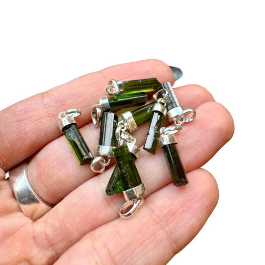 Mini Natural Green Tourmaline Silver Pendant