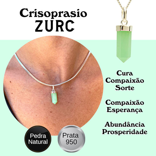 Chrysoprase Mini Water Drop Crystal and Noble Silver Pendant
