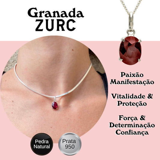 Garnet Mini Highlight Crystal and Noble Silver Pendant