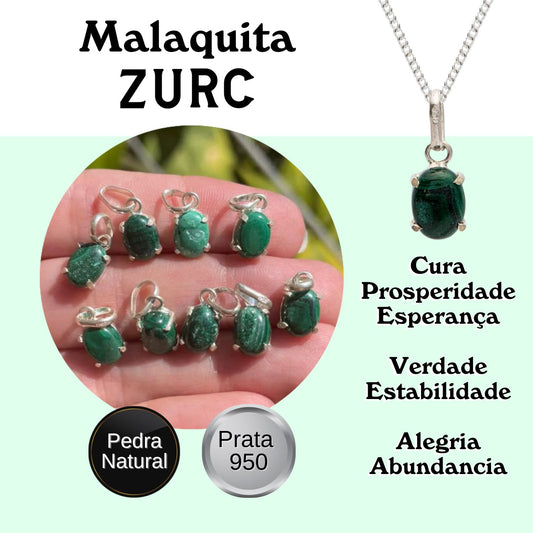 Malachite Mini Highlight Crystal and Noble Silver Pendant