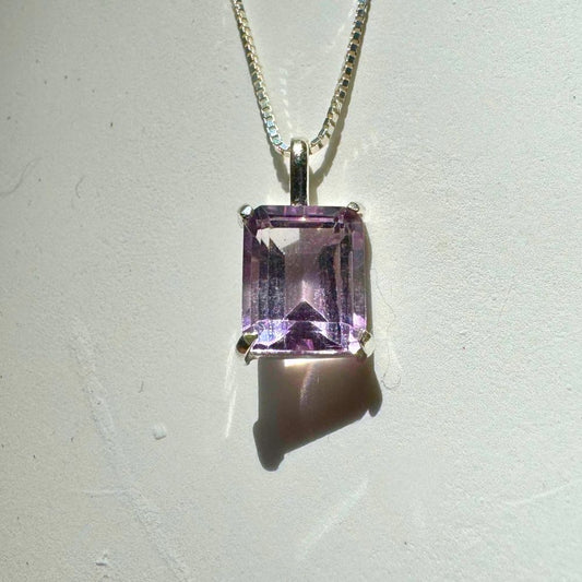 Delicate Rectangular Amethyst 925 Silver Pendant