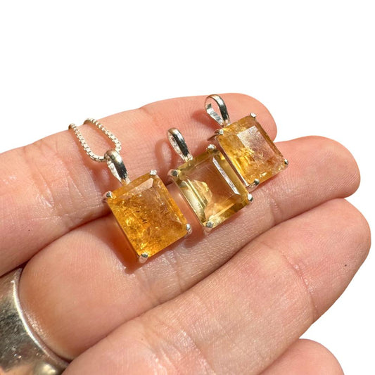 Delicate Rectangular Citrine 925 Silver Pendant