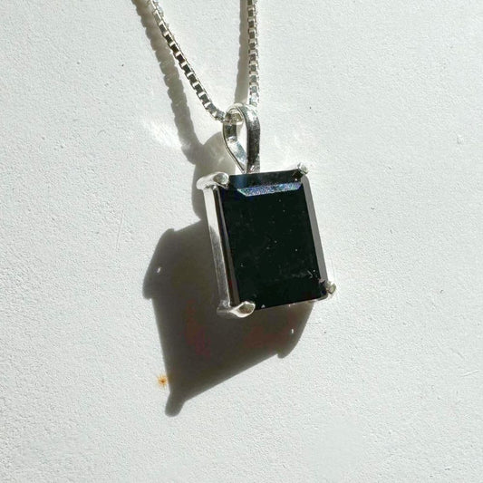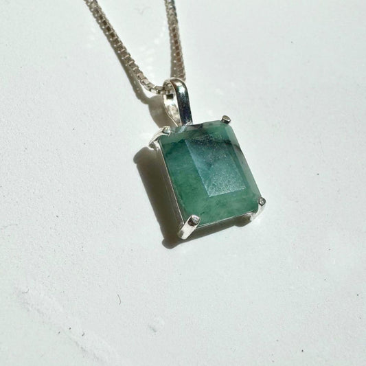 Delicate Rectangular Emerald 925 Silver Pendant