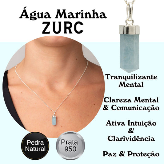 Aquamarine Mini Water Drop Crystal and Noble Silver Pendant
