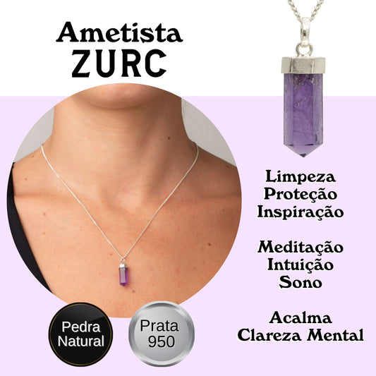 Amethyst Mini Water Drop Crystal and Noble Silver Pendant