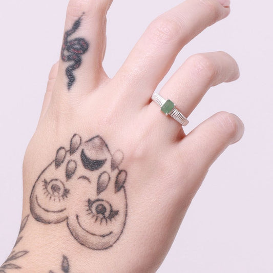 925 Silver Ring Yeux Natural Green Quartz Stone | Organique Collection